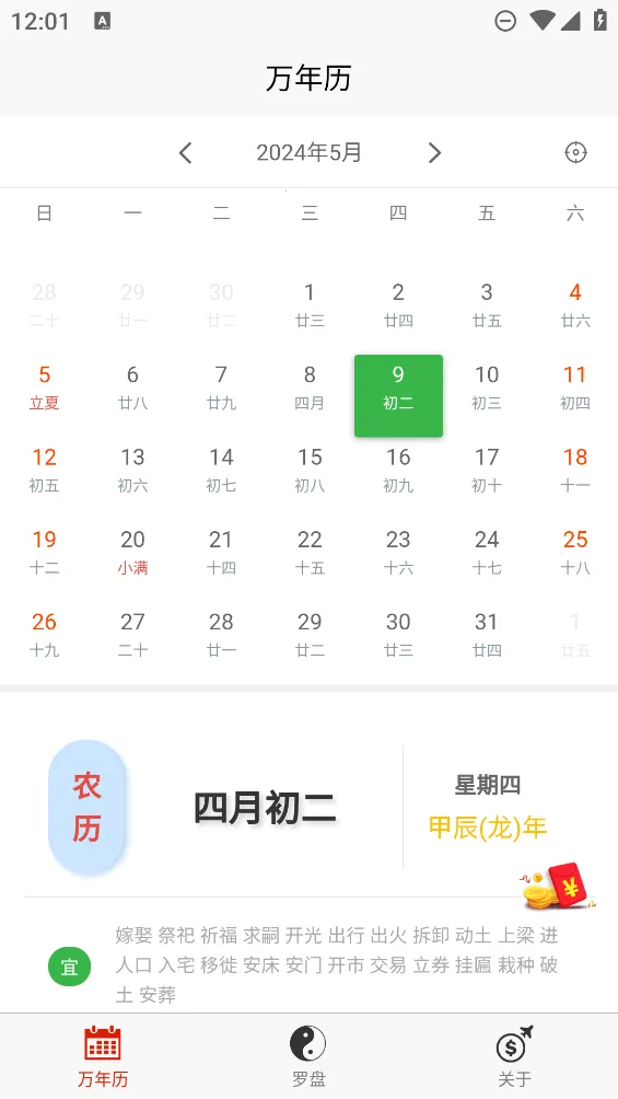 1、全面的时序呈现,囊括详尽的万年历信息,涵盖节气习俗与每日宜忌,构建了完整的时间视图。