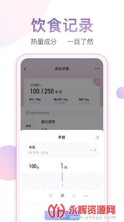 2、资源丰富全面,不管是各种体重单位切换,还是多样的展示方式、丰富食物库等都有。
