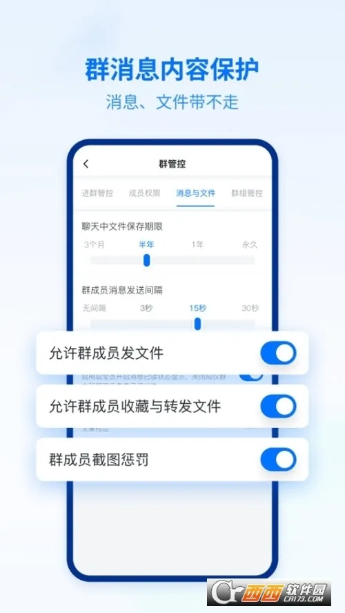 1、信息安全保护,对群成员信息、聊天记录、文件等进行全面保护,防止被盗取,避免群成员被挖走风险,保护公司资产。