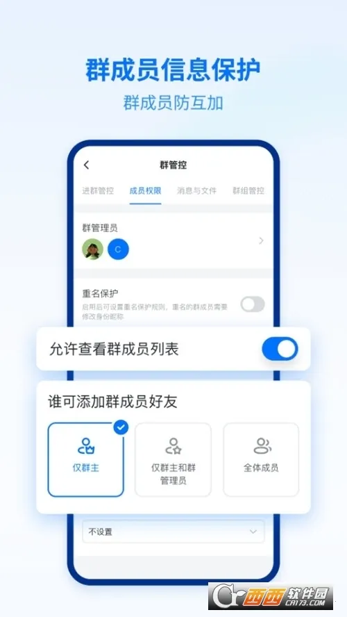 3、权限管理到位,群成员消息文件等都能进行有效权限管理保护。