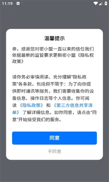 密小盟(企业通讯加密)安卓版是助力企业管理的通讯软件。具备30万人聊天功能且数据全链路加密,群成员消息文件等受管理员权限管理,还提供专属联盟。能保护信息安全、公司资产,有多种聊天模式,实现高效加密沟通 。