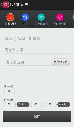 2、提供多种提醒方式,包括正常日程提示、周年纪念等,可设置日期重复,临近日期会提前提醒,不让用户错过重要日子。