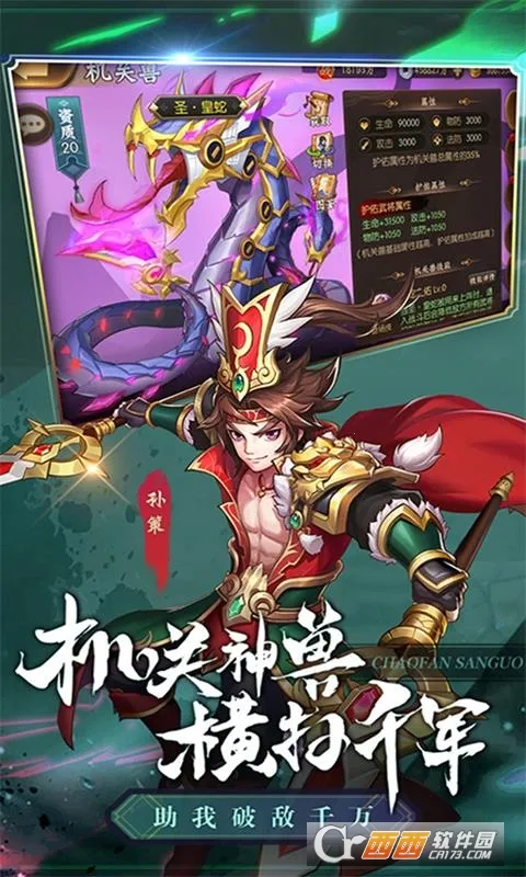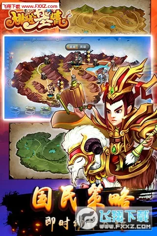 2、游戏采用Q版画风,武将角色以呆萌Q版形象呈现,既保留英雄姿态又增添可爱感,200多名传奇武将可供招募收集。