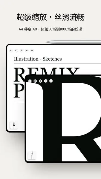 2、缩放功能强:支持1000页面缩放,纸张面积瞬间扩增十倍,书写流畅,PDF与图片同样适用。