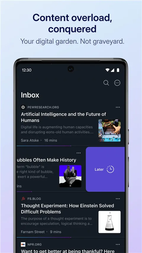 2、ReadwiseReader安卓版主打稍后阅读,为高级阅读者设计,可将网络文章、电子邮件通讯、RSS提要等各类阅读内容集中收纳整合。它能根据个人需求自定义,有强大的突出显示功能,可与多种工具集成,支持跨平台同步和离线访问。
