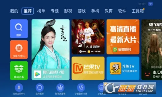 4、功能丰富实用:除作为应用商店,还内置系统优化工具,如一键清理内存加速等;有电视直播源自定义功能,支持应用批量更新与卸载管理等,提升智能电视体验。