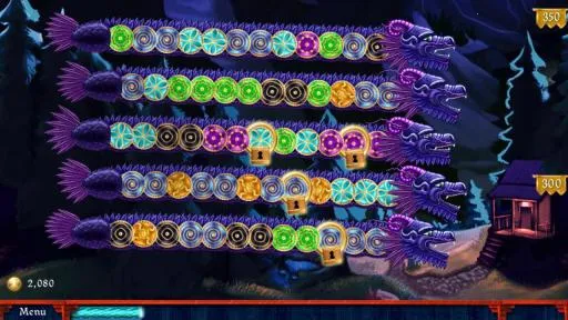 3、它是典型的三消玩法,但又有独特之处,好像有点祖玛的影子,是西方制作的具有东方风格的游戏,特色鲜明。