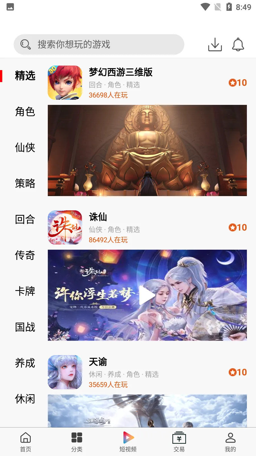3、功能多样:可刷视频看解说,进入平台能选择游戏体验,完成试玩任务后分享游戏给好友,还能试玩赚佣金,不用担心找不到好玩的游戏。