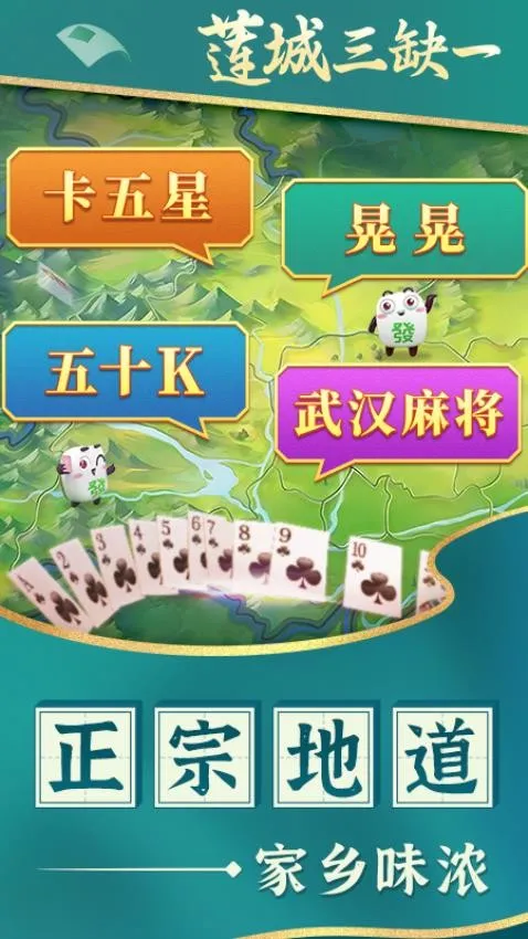 莲城三缺一集合湖北各地麻将、扑克玩法,如武汉麻将、斗地主、卡五星等。支持真人对战,全国牌友实时对局,一键匹配。有聊天互动、比赛模式,福利多,操作简单,多种对局模式可体验不同乐趣,快来下载!