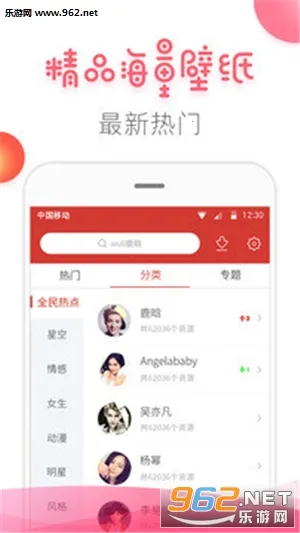 1、海量资源:拥有庞大而多样化的壁纸库,涵盖风景、动漫、明星、简约可爱等分类,还有魔秀桌面独家精美壁纸资源,动静态壁纸包含众多小分类,文字、情侣、明星等一网打尽。