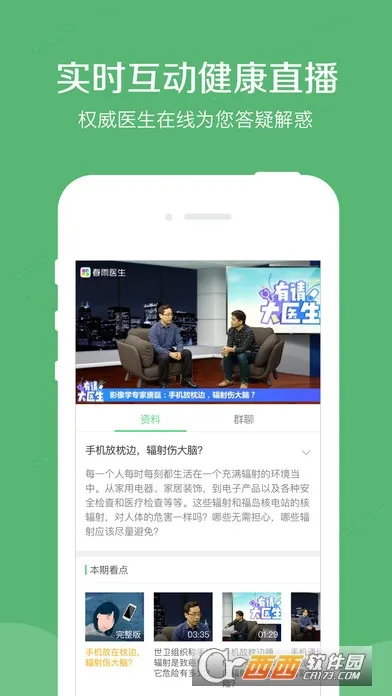 3、特色内容丰富:有春雨热卖的特色服务、权威健康科普资讯、大夫快开腔、有请大医生等视频直播栏目,以及春雨证在测等健康测评栏目,立足科学循证,帮用户检测真伪。