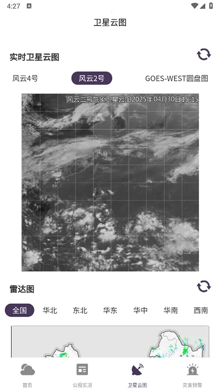 3、数据实时更新:以半个小时为数据单位进行24小时追踪更新,提供最新的气象数据,且图片不保存在本地,节省设备硬盘空间。