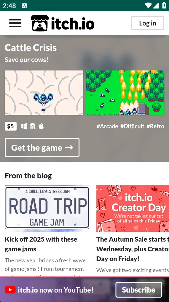 itch最新手机版是Itch.io开源游戏分发平台客户端,面向全球游戏爱好者与开发者。它汇聚海量独立游戏,涵盖多类型,支持免费下载、自主定价等。具备下载管理、自动更新等功能,还有社区互动与个性化推荐。
