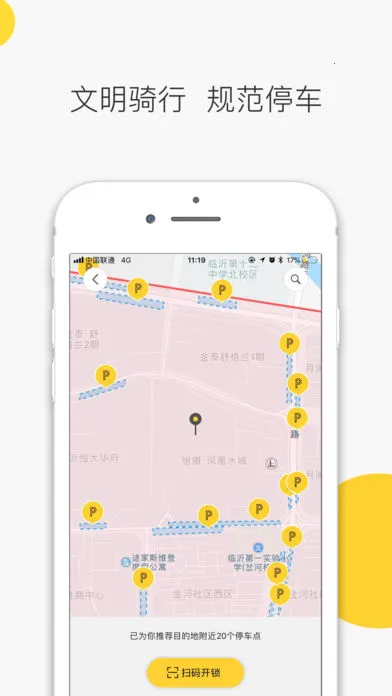 2、无桩共享:无桩设计,随时随地停车,简单方便快捷。