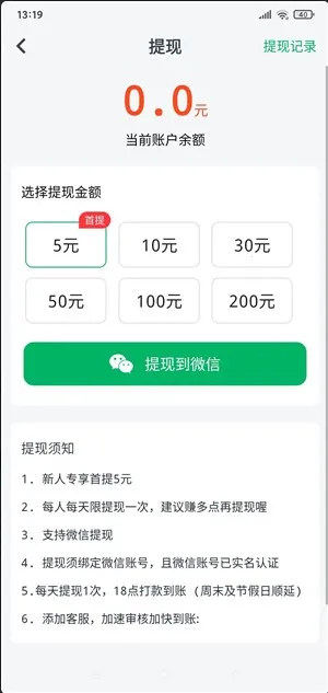 1、新人奖励丰厚:下载即可获得新人奖励,首次登录可获1元起新人现金奖励,且可立即提现。