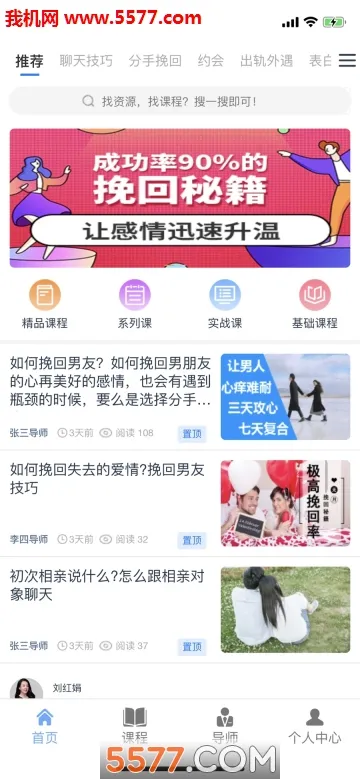 2、丰富资源与功能:提供多品类情感干货、丰富专业的情感课程、高质量情感资源,具备恋爱话术、社区咨询、情感测试、高效课程、脱单秘技、直播公开课等功能,能全面提升个人魅力,帮助自我提升。