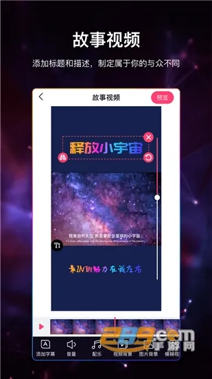 3、具备多种特色功能,如自定义文字样式、网红字幕特效、海量背景素材自由切换、本地视频语音识别等。还有卡点视频制作、故事视频编辑、多格分屏、音频提取、去水印等众多视频剪辑功能。