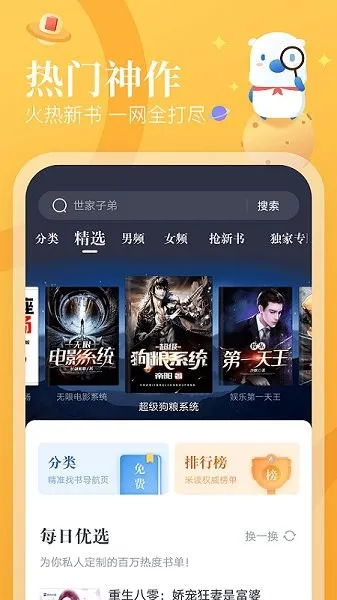 1、资源丰富:涵盖言情、悬疑、仙侠、玄幻、都市等十余种分类,汇聚全网热门小说作品,还有大量完结和正在连载的小说,无论哪种类型都能找到。