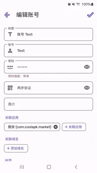 4、软件支持指纹或刷脸的两步验证模式,防止他人查看账户数据。它还是安全的密码管理工具,支持密码生成、管理等功能,操作简单,能保护手机隐私,还可将数据备份在私人云盘。此外,v1.2.1版本兼容Android 12。