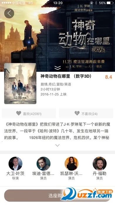 3、特色亮点:可通过GPS定位附近影院,查询影片场次和路线;全国100多家影院电影票4 - 6折;支持在线购买选座票,与影院前台售票系统同步,实现全国百家影院实时在线选座快捷购票。