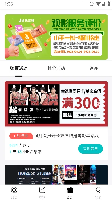 3、它优惠活动多,会员可参与专享特惠、明星见面会特价专场、首映式折扣购票等活动,还有4 - 6折电影票,让观影更实惠。
