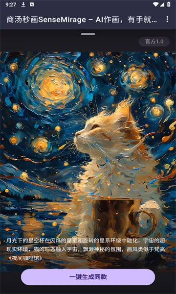 4、使用便捷高效:新用户注册有免费生成机会,分享可获无限卡。操作简单,输入文字或简单操作即可完成画作生成,利用AI技术短时间内生成多种风格画作,提升创作和设计效率。