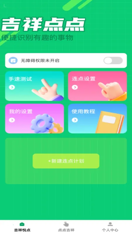 吉祥悦点最新手机版是一款实用的手机操作辅助工具。它可预设指令简化流程,支持快速添加管理应用游戏,有多样手速测试模块。能记录点击、模拟手势,功能实用有趣,界面简洁,助用户优化体验、提升效率。