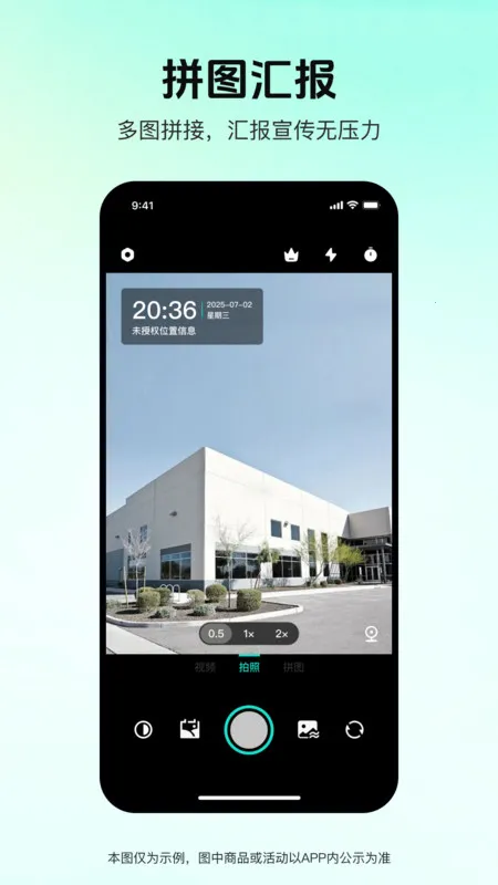 4、亮点突出,按地理位置自动分文件夹,便于整理导出照片,相关实拍图可打包发送,做日报能一键生成带水印汇报图,外勤打卡拍照即可完成考勤,月底自动统计出勤情况。
