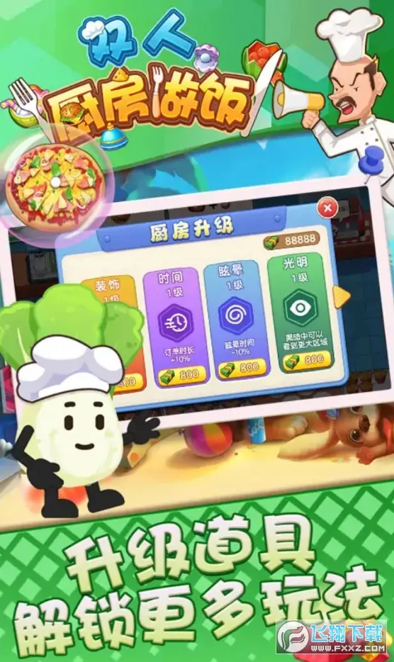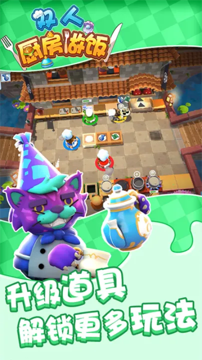 双人厨房做饭是款休闲经营手游,有双人合作和对决模式。玩家可与亲友组队,分工完成订单。角色技能各异,搭配有策略。游戏设无限金币钻石,可解锁食谱、升级厨房,操作简单,卡通画风治愈。
