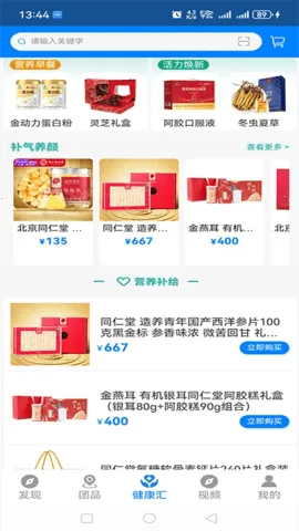 3、用户可通过每日签到、浏览商品或完成指定任务等赚取积分,积累后能兑换丰厚好礼。设有团购活动区,可参与或发起拼团,以优惠价格购买健康商品。
