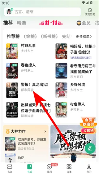 1、在书城页面,点击要阅读的小说,进入小说详情界面。