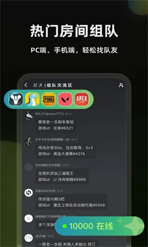 3、功能特性:具备高质量语音通话,支持192kbps立体声,有AI降噪、回声消除等功能;有特色语音包,可在语音中发送,PC端能获取更多;提供热门游戏房间方便组队,支持文字聊天频道、多端状态同步 。
