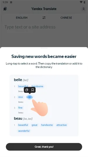 1、雅虎翻译2025最新版本使用操作简单,内容不断丰富,能让用户随时随地轻松翻译,为大众提供便捷的翻译服务,无论是学习还是查找资源都很方便。