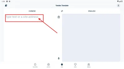 1、打开雅虎翻译,点击底部text选项,进入文本翻译界面。