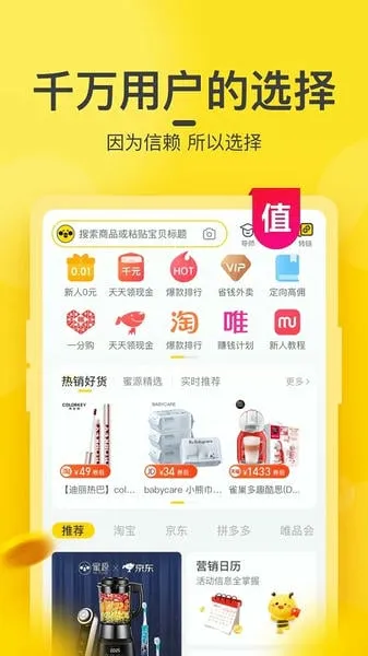 1、优惠福利多:与多家知名电商达成深度合作,提供海量淘宝、京东等购物平台的商家内部优惠券,还会不定期推出团购活动,让用户用更低价格购买名牌商品。