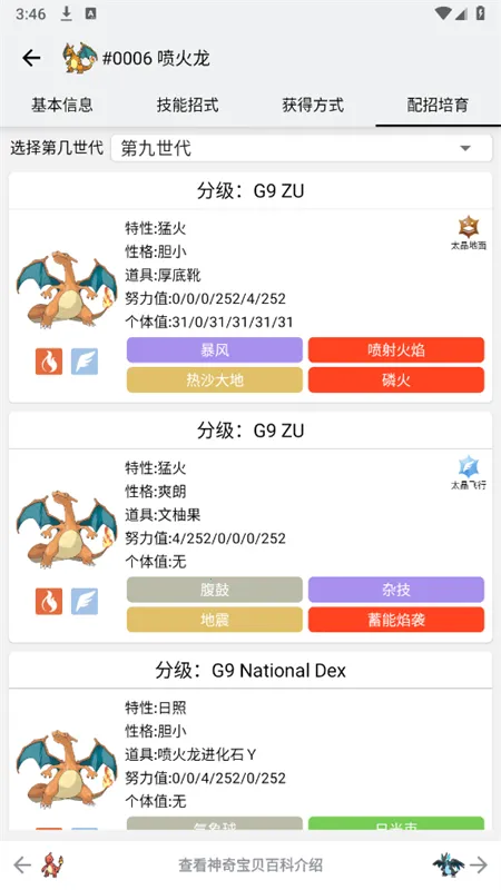 1、神奇宝贝图鉴涵盖全世代宝可梦数据,信息全面且权威,就像一本随身携带的百科全书,能满足不同玩家需求,无论是新人还是资深训练师都适用。