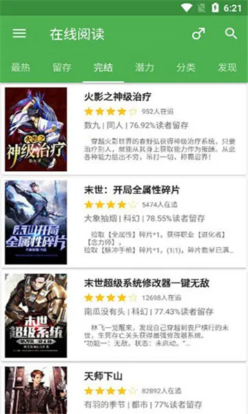 1、海量免费资源:拥有丰富且类型齐全的小说资源,涵盖奇幻玄幻、耽美言情、都市等各种类型,所有小说资源全部免费,可免费阅读和下载。