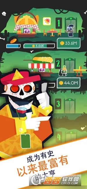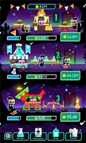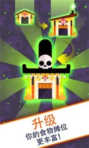 3、魔性视觉风格:骷髅工人、熔岩餐厅、僵尸顾客,打造暗黑系萌趣画风。