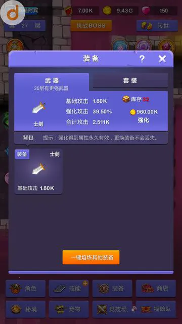 2. 转世系统独特,打败大boss获符文,转世提升属性,穿越药水可关卡续玩。