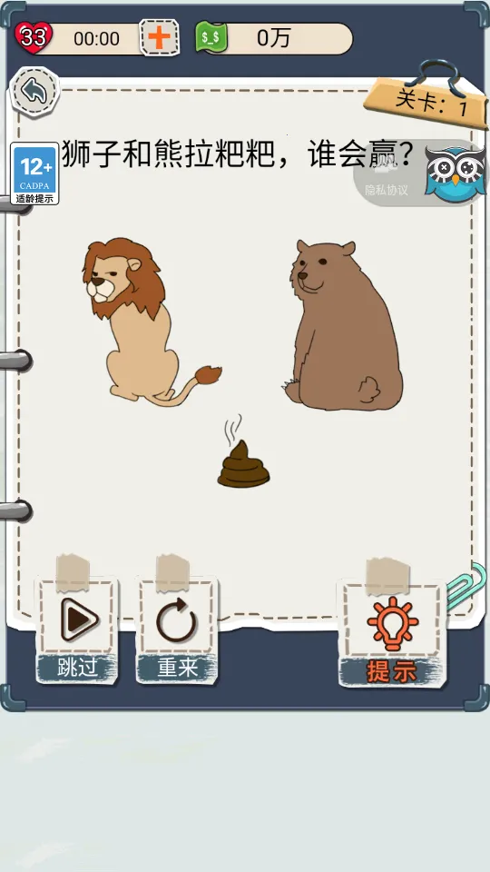 4. 多样优势:界面与交互逻辑简化,低门槛设计让玩家快速上手;操作流程无缝衔接,流线型操作反馈即时明确;画面采用简洁明了的卡通风格,文字图片结合带来不一样冲击;题目类型千奇百怪,需反向思考,玩法丰富多样,结合冒险闯关与解题答题,趣味十足又极具挑战。
