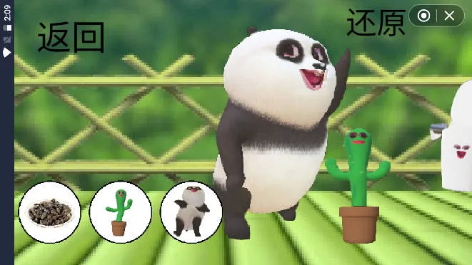 1、冒险闯关玩法:玩家操控国宝熊猫在四大关卡中冒险,跳跃躲避攻击,收集道具金币,利用金币购买武器打怪通关。
