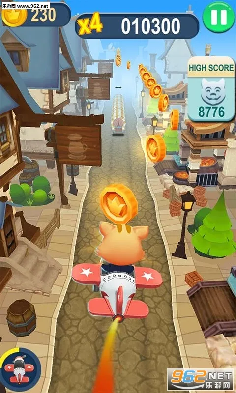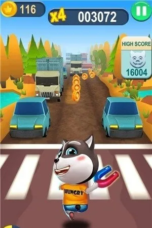 3. 道具多样:路上会有金币以及各类道具,例如加速鞋能够让小猫短暂加速,磁铁能够吸附周围的金币,还有其他特殊功能道具帮助玩家获得更高分数。
