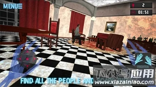房里有鬼床下有人是恐怖逃生解谜冒险游戏,玩家化身超能力鬼魂穿梭阴森房间,通过惊吓人类破解谜题逃脱。采用第一人称视角,结合黑暗场景与沉浸音效营造恐怖氛围,关卡丰富,主题多样,任务独特。