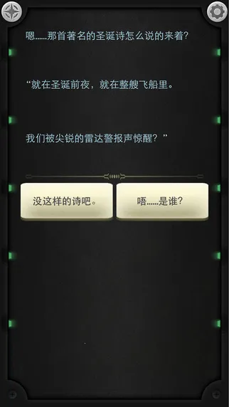 1、文字冒险核心玩法:玩家通过与泰勒的对话抉择来提供行动建议,摆脱困境,拯救飞船WhiteStar号。