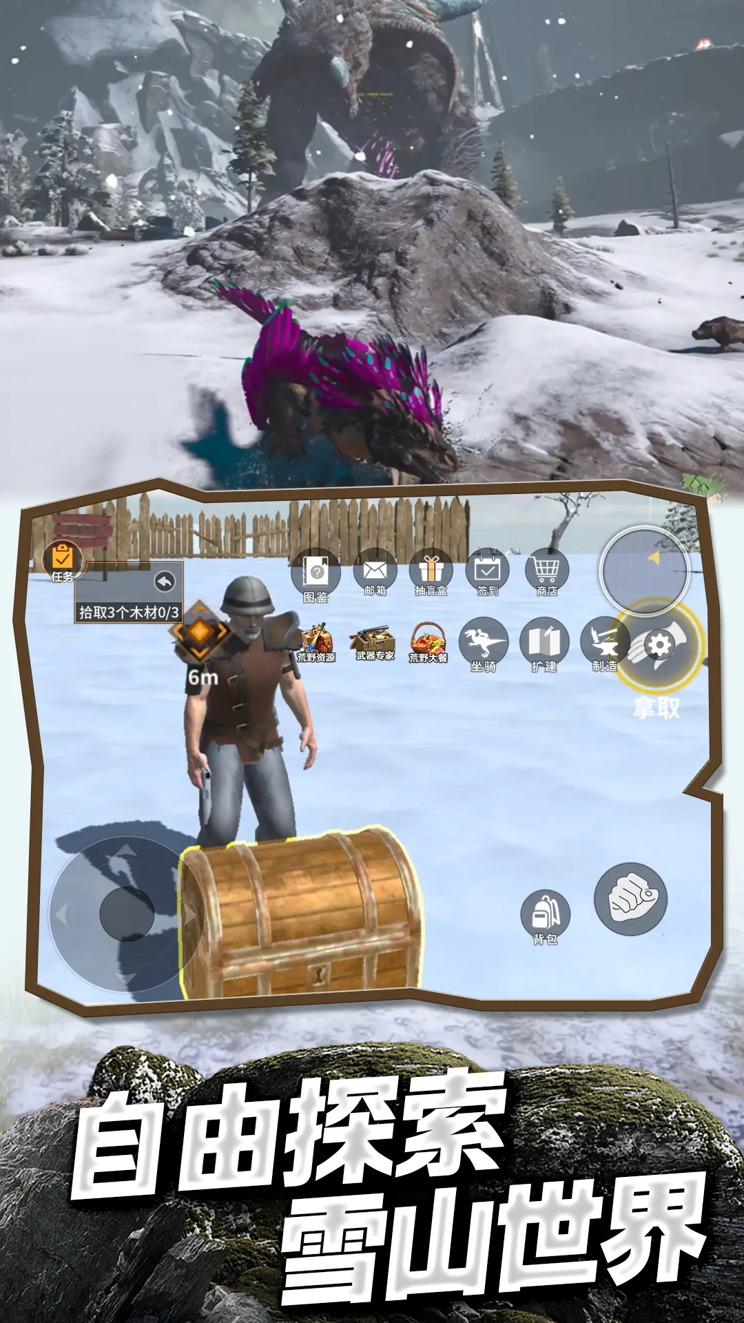 玩家置身未知冰河世界,自由探索每个角落,收获新资源与惊喜。