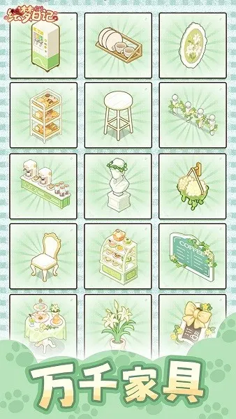 2、自由装修:拥有多种风格,如温柔奶油风、自然田园风、复古怀旧风等,玩家能随心摆放家具,自由定义空间,打造理想中的治愈小店与温馨小家。