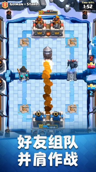 2、开场有两座炮塔及一座主堡,歼灭对方主堡宣告胜利。