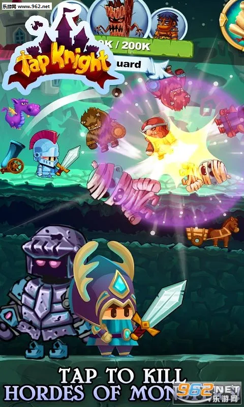 玩家扮演手持长剑的骑士,在冒险中应对右侧不断出现的敌人,点击屏幕消灭怪物,点击速度越快效率越高,控制角色位置连续点击作战,体验精彩挑战。