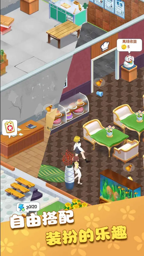 我的甜品店2025最新版本是一款模拟经营游戏。玩家扮演店长,通过合成解锁菜品、消除升级雇员。能自由装饰店铺,制作各种甜品,面对市场竞争。有精美的画面、动听的配乐,还有丰富道具和多样玩法助你经营好甜品店。
