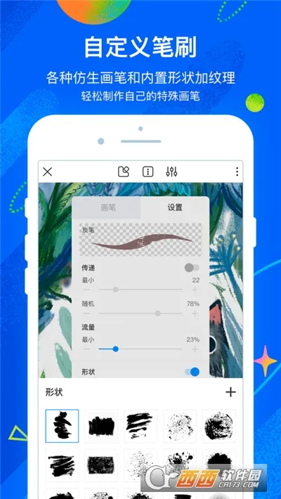 **画笔丰富**:拥有多种多样的画笔工具,丰富的笔刷可以随心选择,还支持导入导出自定义画笔,随心定制个人笔刷。